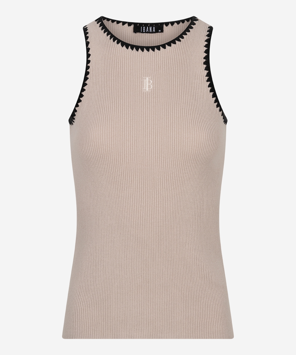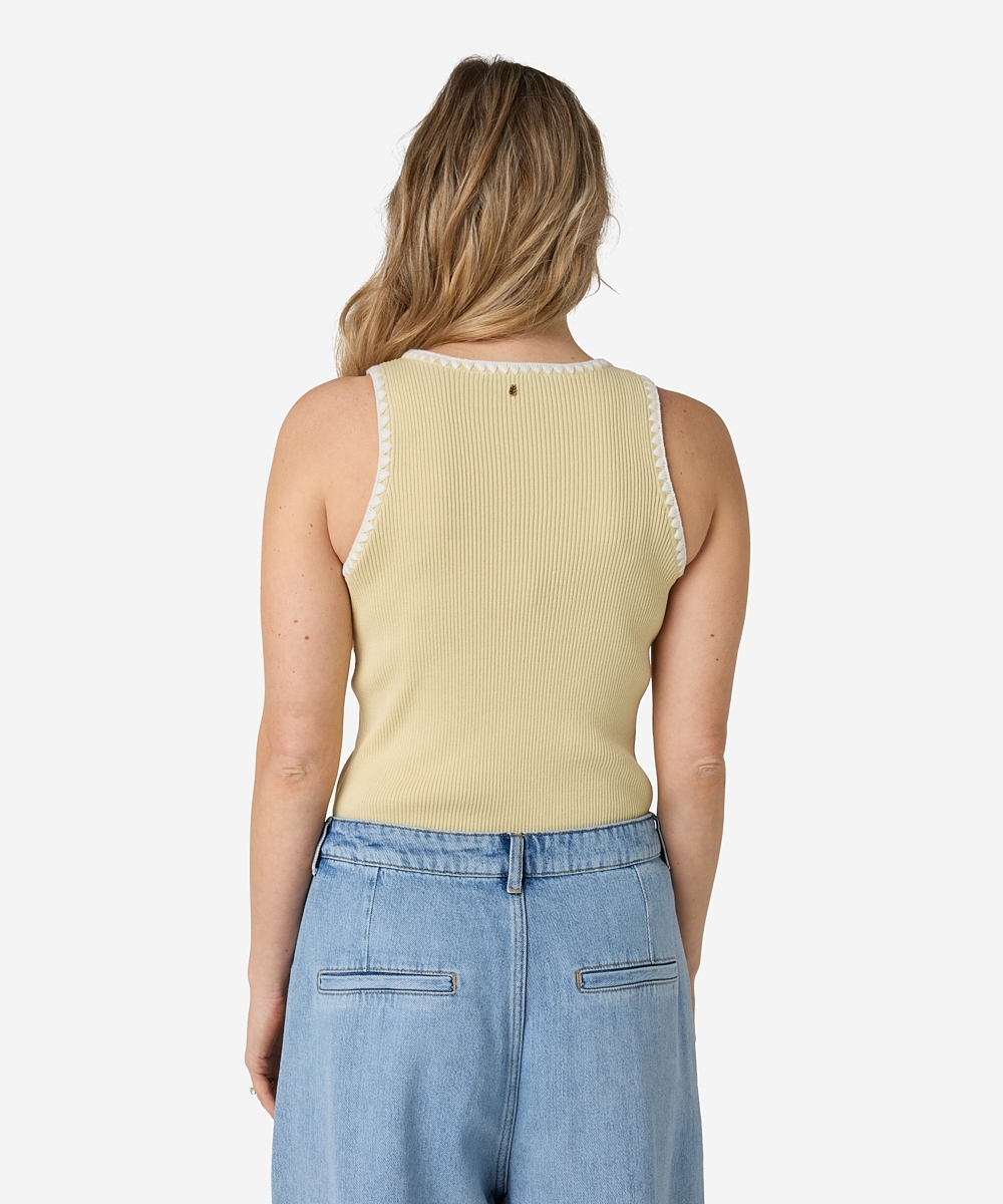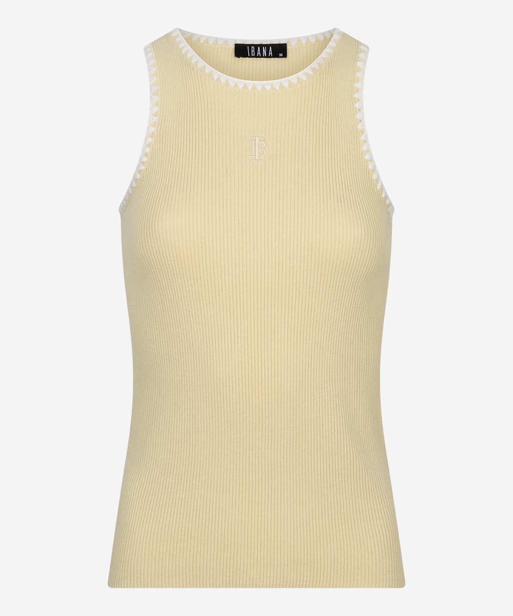 De timora top van Ibana in de kleuren Beige en geel. De Timora top is een vrouwelijke basic die niet kan ontbreken in je garderobe. Deze mouwloze top is gemaakt van 100% katoen, bevat stretch en heeft een flatterende, getailleerde fit met een ronde hals. Dankzij de zachte stof en aangesloten pasvorm is de top ideaal om in laagjes te dragen of stijlvol op zichzelf.  Deze en andere mooie items van Ibana vind je bij Louvigne op de webshop.