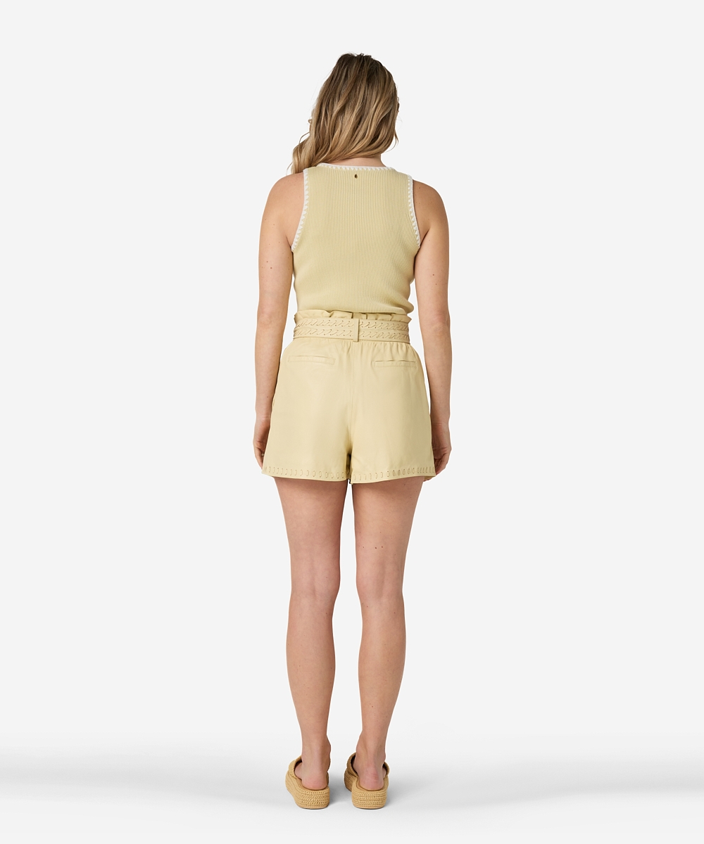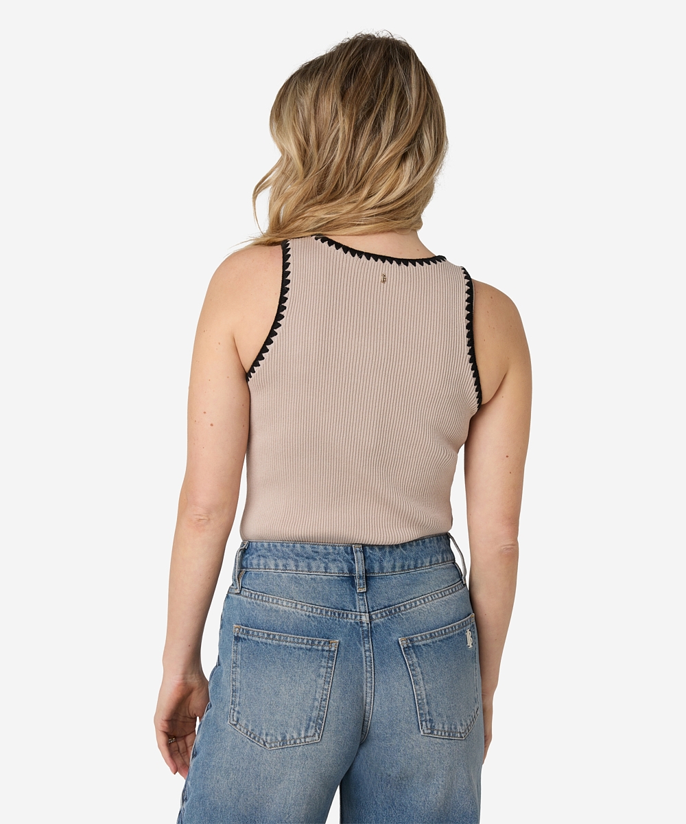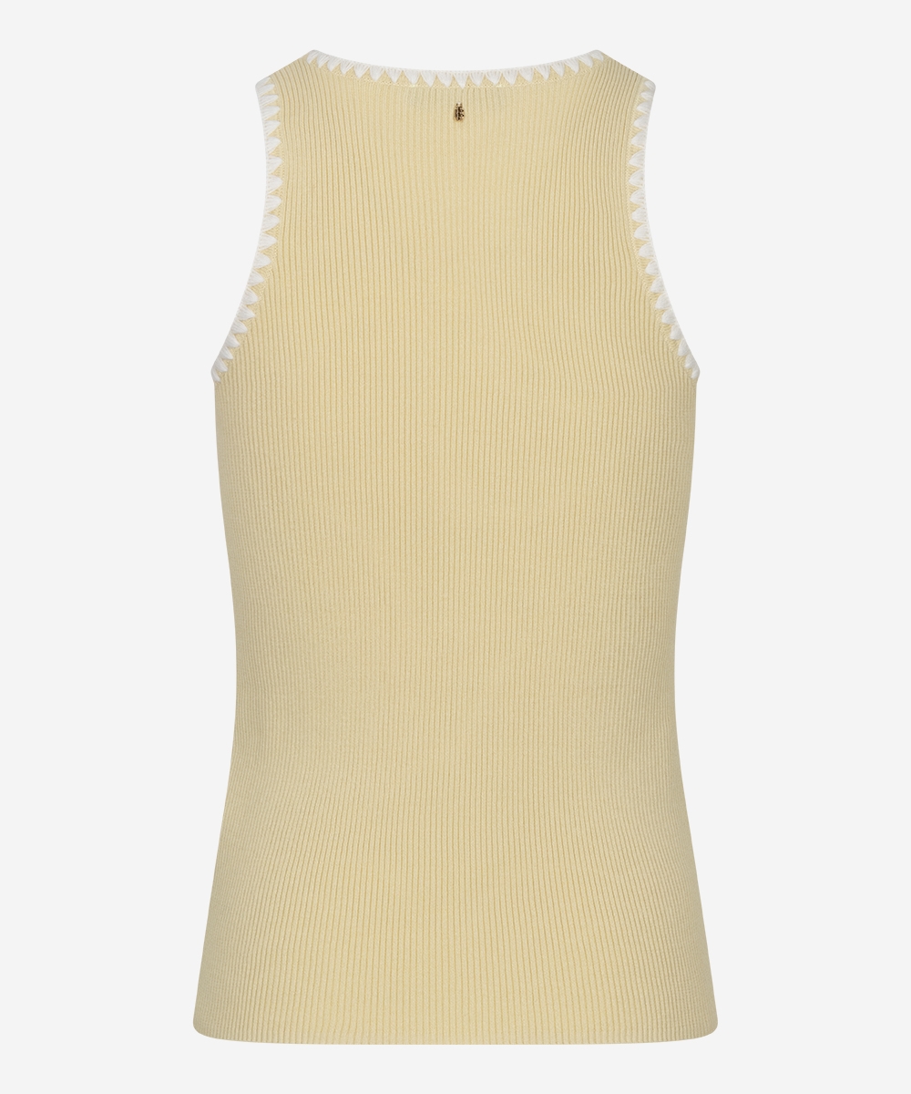 De timora top van Ibana in de kleuren Beige en geel. De Timora top is een vrouwelijke basic die niet kan ontbreken in je garderobe. Deze mouwloze top is gemaakt van 100% katoen, bevat stretch en heeft een flatterende, getailleerde fit met een ronde hals. Dankzij de zachte stof en aangesloten pasvorm is de top ideaal om in laagjes te dragen of stijlvol op zichzelf.  Deze en andere mooie items van Ibana vind je bij Louvigne op de webshop.