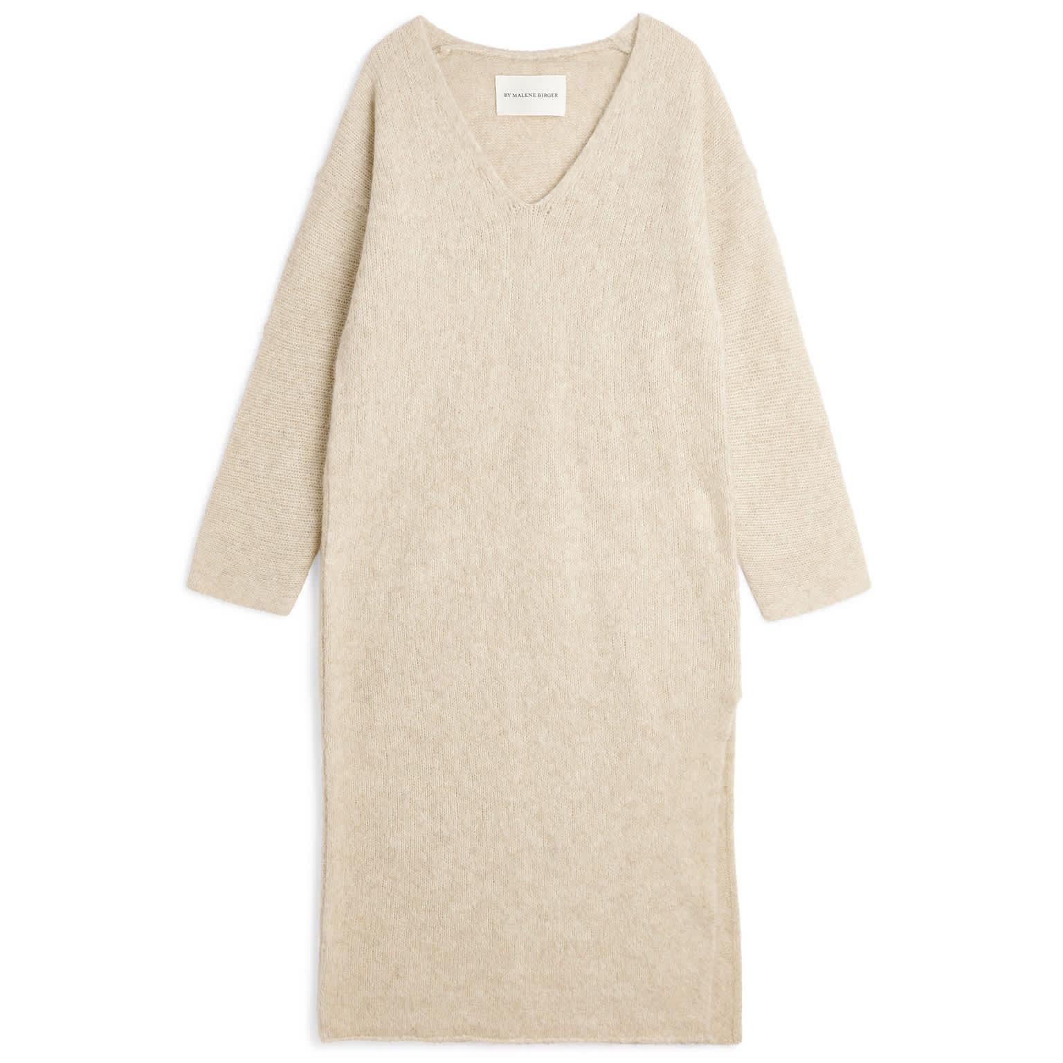 De Favine jurk van By Malene Birger in de kleur Tannin of Marble. Deze fijne knitwear jurk is gemaakt van een wolmix, heeft splitten aan de zijkant en een mooie v-hals. Deze en andere mooie items By Malene Birger vind je bij Louvigne op de webshop.