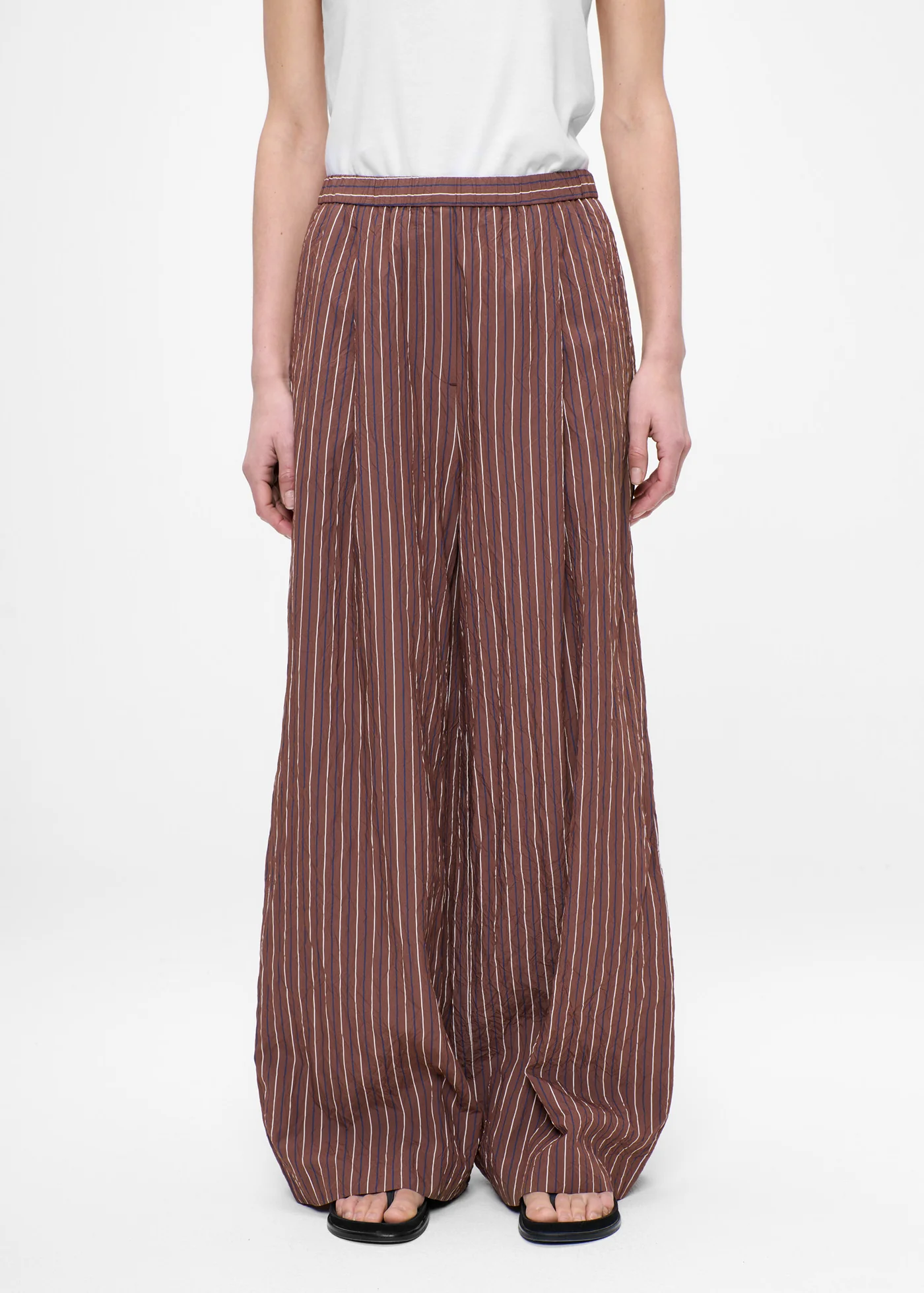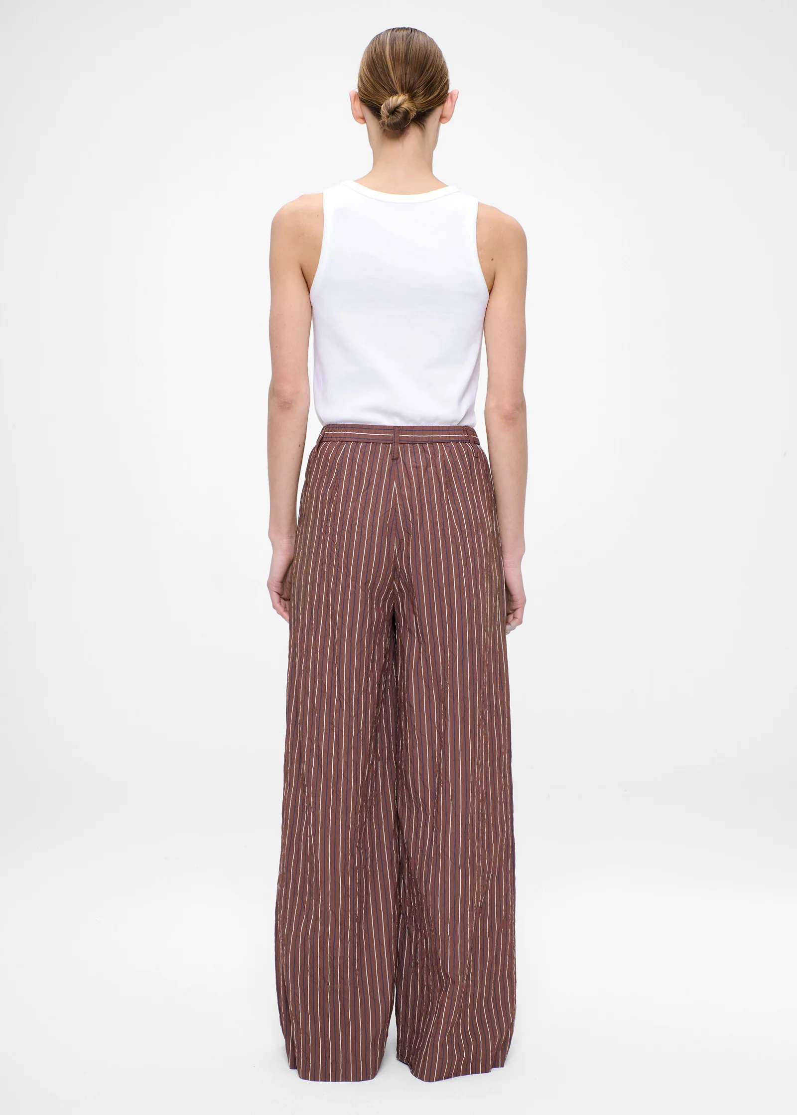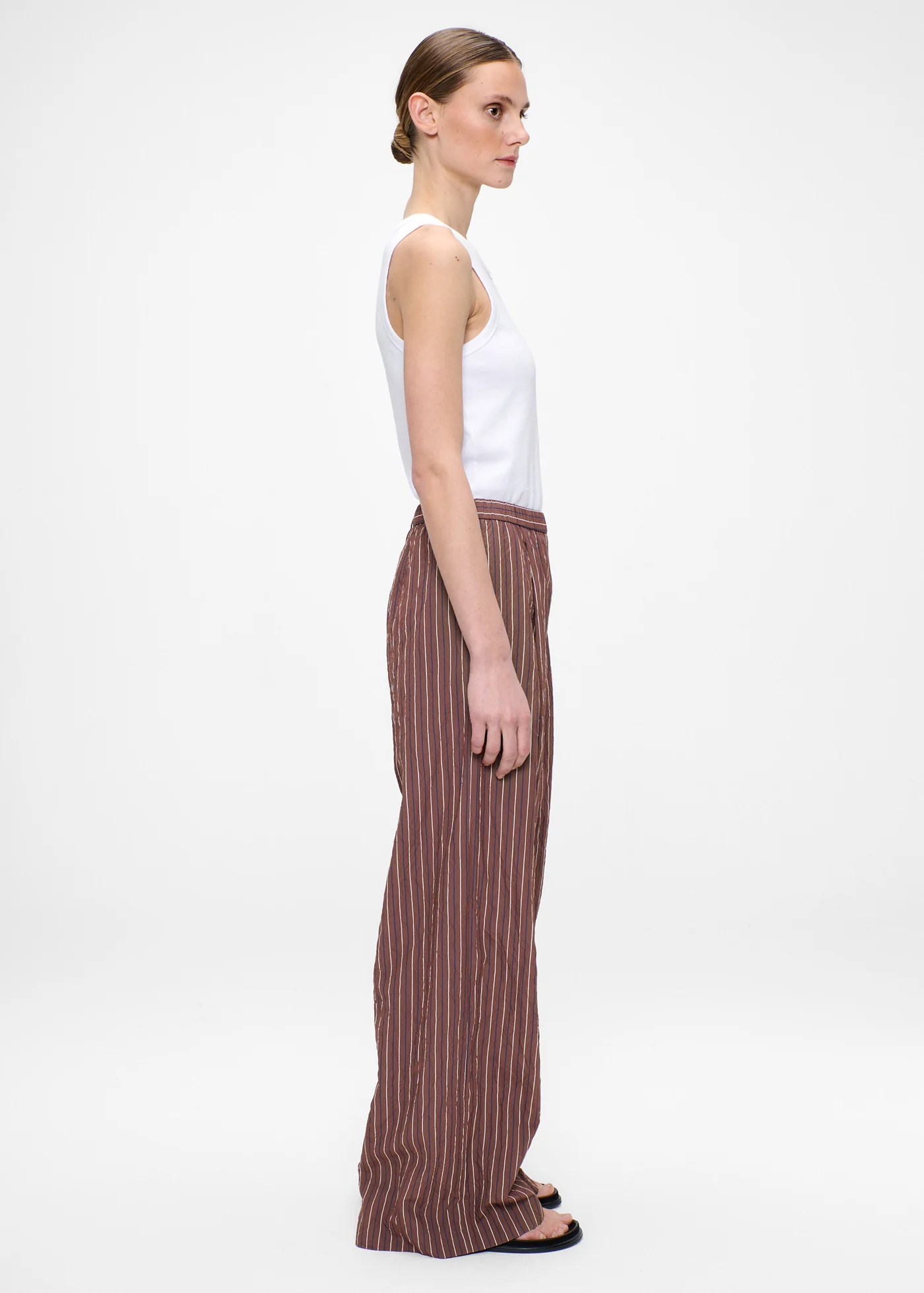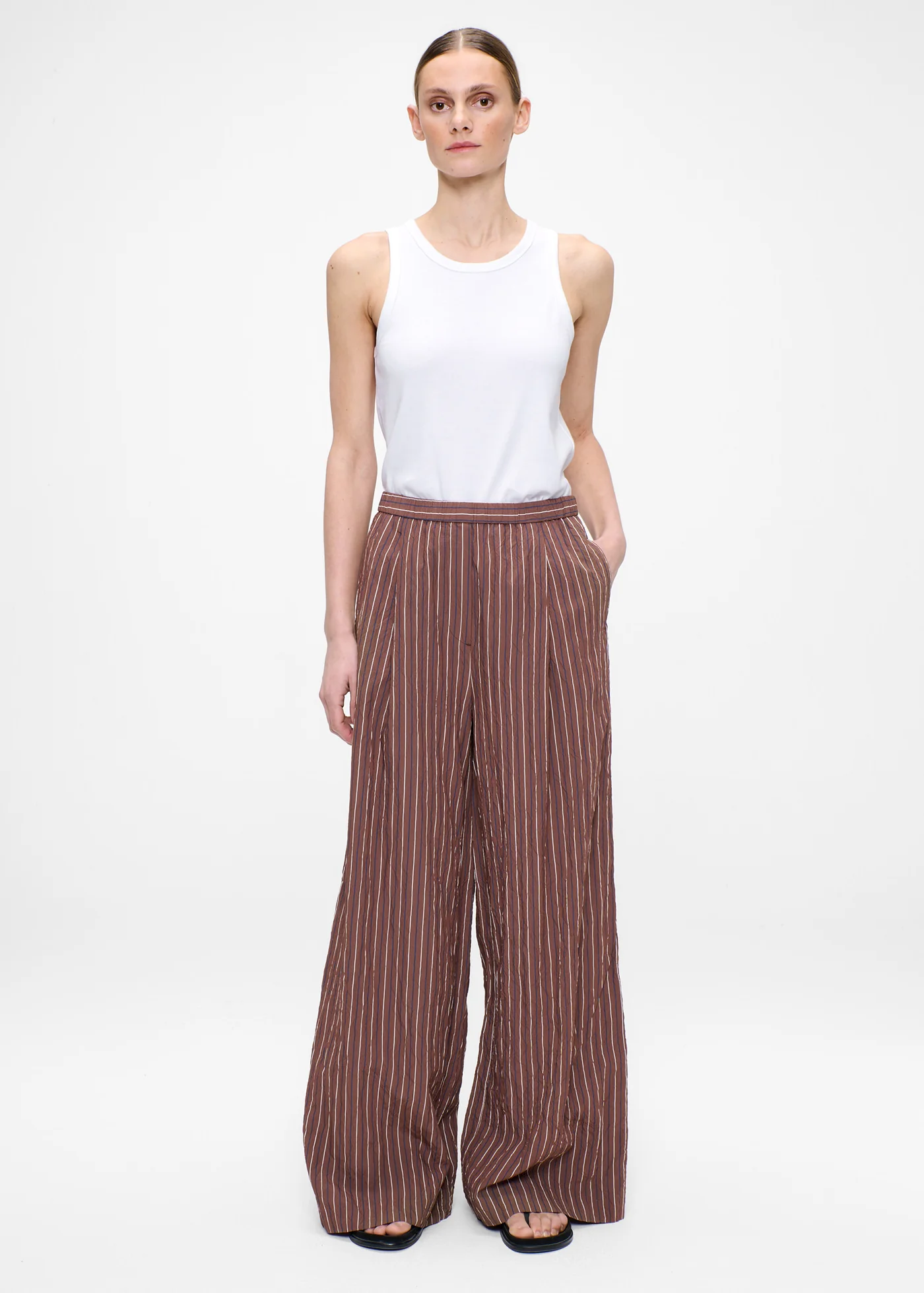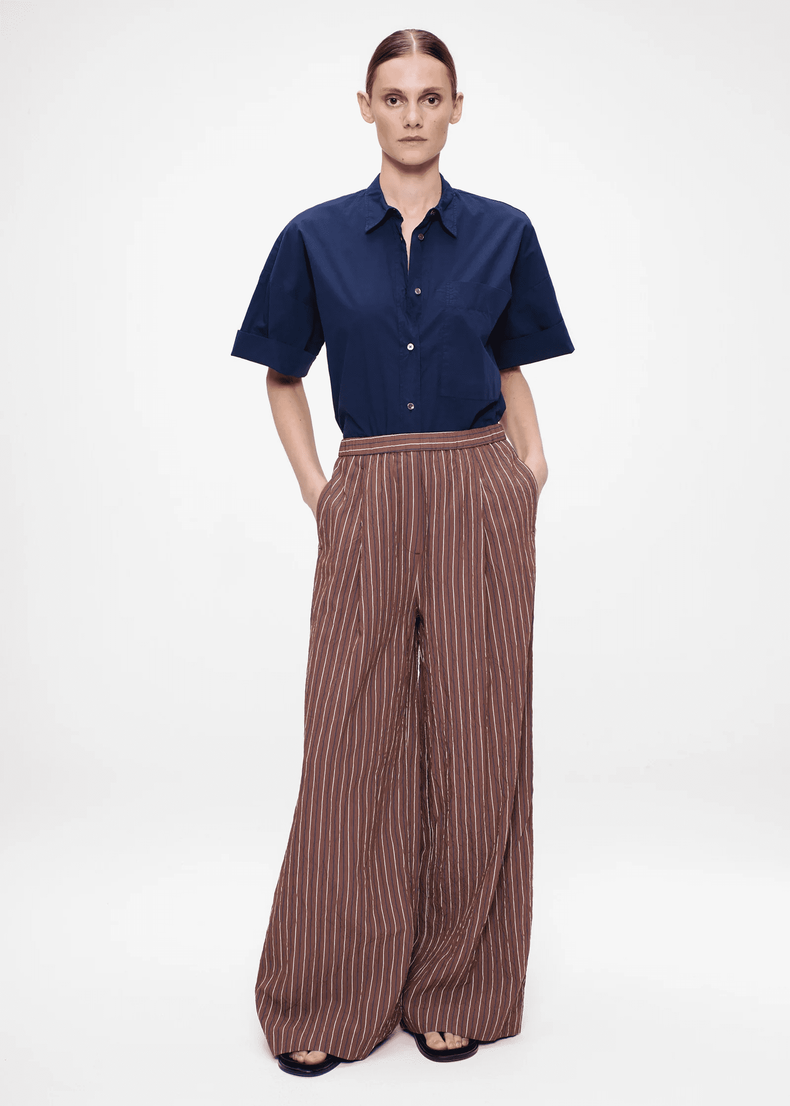 De Bonnie stiped wijde fit pantalon van Zenggi. Gestreepte Bonnie-broek met wijde pijpen, gemaakt van een luchtige viscosemix. Combineer de Bonnie met b.v. met de bijpassende blouse striped long sleeve blouse of een mooi wit of blauw shirt om de look compleet te maken. Deze en andere mooie items van Zenggi vind je bij Louvigne op de webshop.